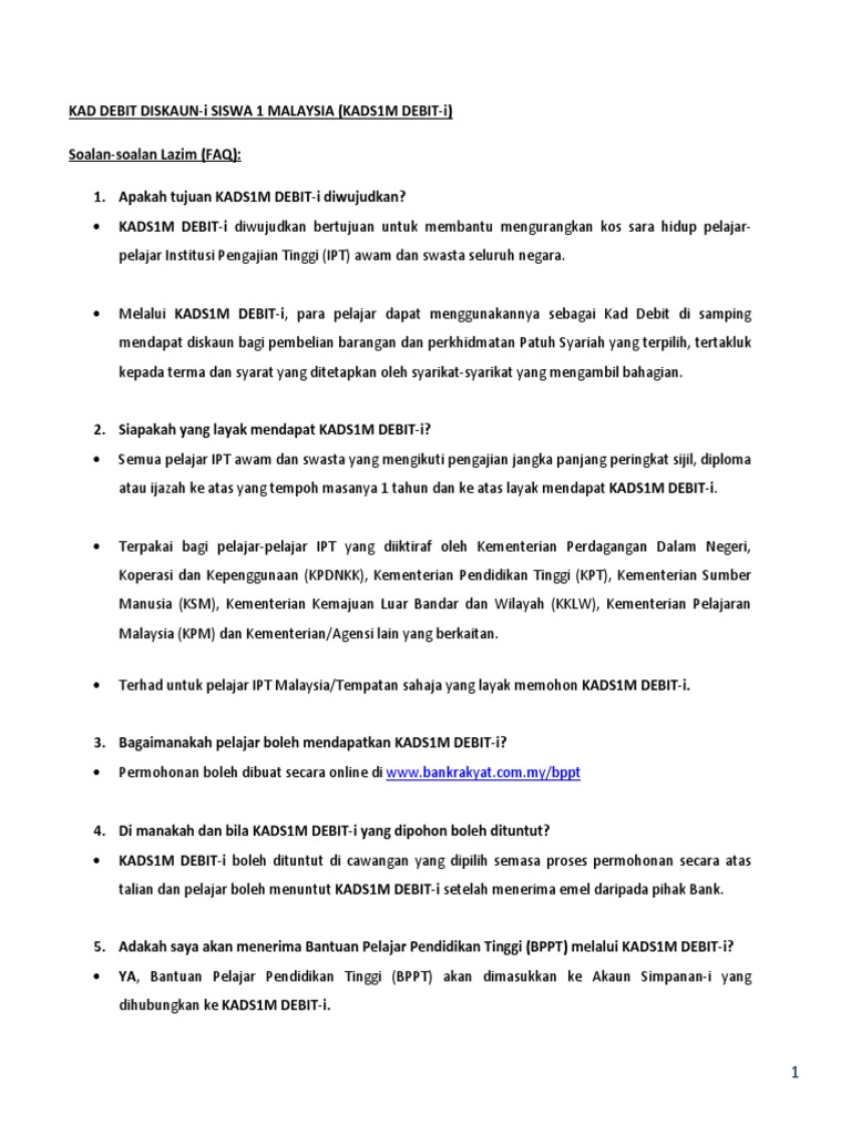 Cash withdrawal at any bank rakyat atm nationwide and all marstercard particapating banks worldwide of up to rm 5,000.00. Isi borang epermohonan di bank rakyat status permohonan akan disahkan melalui emel kunjungi cawangan bank rakyat berdekatan untuk mengambil kad siswa Permohonan kad siswa 1 malaysia : Panduan buat pelajar ipta/ ipts yang ingin menyemak status permohonan kad1sm kad debit diskaun siswa 1malaysia atau singkatan kads1m adalah merupakan satu inisiatif kerajaan untuk membantu mengurangkan kos pengajian. Ini salah satu usaha kerajaan malaysia yang terbaru bagi meringan beban.